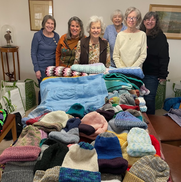 Happy March! This month we were fortunate to be able to speak with Jill Miller, organizer of the Heather Gardens Peace Pod. The seeds of this active group began when Jill joined a small knitting group meeting at Temple Sinai back in 2013. Shortly before the COVID epidemic began, Jill invited others to join her and they migrated to meeting at Heather Gardens so that they could expand their membership and become an official “Peace Pod.” A core group has been meeting there ever since, utilizing a Zoom meeting format when they were unable to meet in person. The group now meets monthly in one of their homes and they enjoy making items for Knitting4Peace, as well as several other groups. Jill says they “end up getting on a mission” and become very focused on making items for specific groups, which have included not only Knitting4Peace but also the Women’s Bean Project and the Florence Crittendon Home. Making items for other community groups allows them the opportunity to make unusual items that might not be what Knitting4Peace needs at any given time. They also enjoy learning about and connecting with other groups in their community that are in need of support.