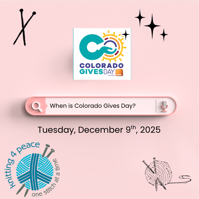 Thank you for standing with us throughout 2025. Because of you, Knitting4Peace has continued to spread love, comfort, and warmth—both here in Colorado and around the world. This year, thousands of handmade items were delivered into the hands of children, families, and communities who needed them most. And yet, our work is far from over. Too many people still face winter without a hat, a scarf, or even a small token of comfort to remind them that they are not forgotten. At Knitting4Peace, we believe every person deserves dignity, warmth, and care, and together, we can make that vision a reality. As a small nonprofit powered by part-time staff and incredible volunteers, every gift you give makes a huge impact. With your financial support, we can expand our programs, answer more requests for help, and ensure that no request goes unanswered. This Giving Season, we invite you to continue building peace and comfort with us. Your generosity allows us to be present where we are needed most—and in 2026, that need will be greater than ever.