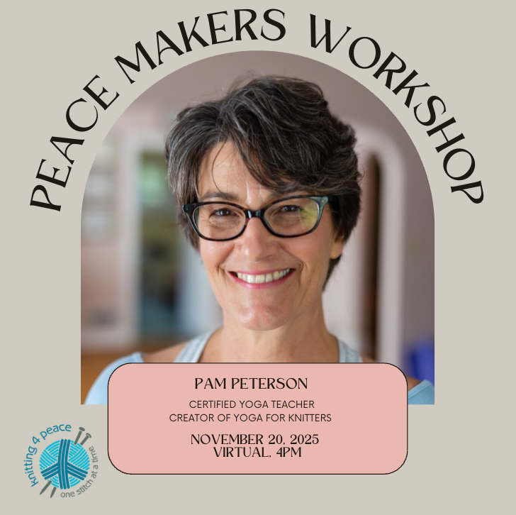 Peace Makers Event: Yoga for Knitters with Pam Peterson We’re excited to announce our autumn Peace Makers Workshop with Pam Peterson, founder of Yoga for Knitters! Pam will share why yoga is so beneficial for crafters and lead us in a virtual, all-levels practice. Every age and experience level is welcome!